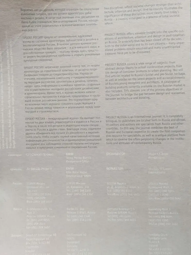 Журнал "Проект Россия" № 1 Международный журнал по архитектуре, урбанистике и дизайну